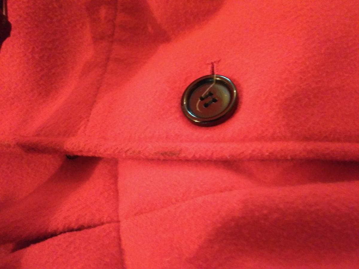 1. Płasz Reserved 36, czerwony, kupiony w ubiegłym roku, normalne ślady użytkowania, przydałaby mu się pralnia ( po prostu trzeba go odświeżyć)