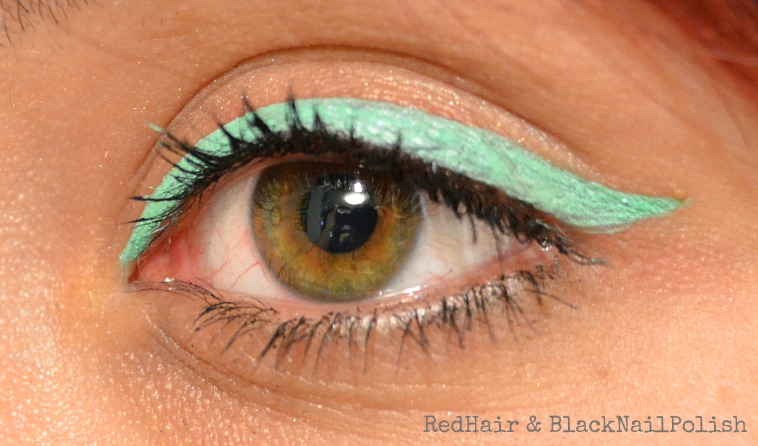 Kolor? Nie widzę sensu porównania, bo to jakby porównywać czerwoną szminkę do pomarańczowej- na pierwszy rzut (damskiego) oka widać, że to dwa różne kolory . Tutaj można zobaczyć jak wygląda eyeliner z Cucuby w akcji- widać, że jest to taka typowa mięta, przynajmniej dla mnie, bo turkusu miętą nie nazywam. Jak się dokładniej przyjrzeć to można zauważyć, że jest bardzo wodnisty (pod jaskółką widać kawałek źle pociągniętej kreski), o czym zresztą pisze sama autorka. Z kolei eyeliner z Bondi Beach to błękitnawy turkus, pokazywałam go na blogu.Jeżeli dany kolor nie pasuje do tęczówki to ja robię taki myk, że dodaję jeszcze inny, jak pokazałam to w notce powyżej- pomarańcze to bajka dla niebieskookich, dlatego ja domalowałam jeszcze niebieską kreskę .Pokusiła się któraś z Was dla odmiany na brązowy eyeliner? Szkoda, że Essence wycofało Metal Glam (robiłam nim kreskę jednym pociągnięciem), uwielbiałam go właśnie w tym kolorze i szukam godnego następcy.
