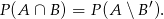 ![]() B' to wszystko poza zbiorem B, czyli zawiera w sobie zbiór A bez iloczynu AiB. Ten iloczyn należy do zbioru A, więc jest tym, co jest w zbiorze A, a nie ma w zbiorze B'. |