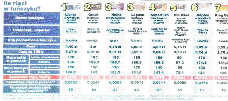 A od siebie dodam w sprawie ryb, że chyba nie warto spożywać tuńczyka innej firmy niż Lisner i Graal: http://3.bp.blogspot.com/-_14kVUjsG4...fddfdfdfdf.jpg Chociaż obecnie tuńczyk błękitnopłetwy jest przeławiany i jeśli zalezy Wam na nieniszczeniu zasobów mórz to szukajcie innych gatunków tuńczyka w puszce. Poza tym jak kupujecie jakieś suplementy diety, to sprawdzajcie skład, a dokładnie: jak np. kupujecie magnez z wit. b6, sprawdźcie jaki dokładnie jest związek tego magnezu, bo niektóre sa prawie wcale nieprzyswajalne, tak samo z innymi minerałami (z tego co kojarze dobrze przyswajalne są mleczany i cytryniany, a np. węglany czy tlenki są bardzo słabo przyswajalne, np. tlenek magnezu, albo cytrynian magnezu, a ceny i jednych i drugich mogą być bardzo podobne) albo sprawdzajcie czy witamina jest pochodzenia naturalnego, czy syntetyczna (np. przy wit. E jak bądzie dl-alfa-tokoferol to jest syntetyczna, a jak d-alfa-tokoferol to naturalna). Jak kupujecie zioła, czy herbaty to lepiej kupujcie sypane, bo te w torebkach są dużo gorszej jakości i często nie zawierają już wielu np. olejków eterycznych. I jak lekarz Wam coś zapisze to sprawdźcie czy nie ma tańszego zamiennika, prawie zawsze są nie raz nawet o kilkadziesiąt %. Edytowane przez 201605161006 Czas edycji: 2014-01-17 o 11:27 |