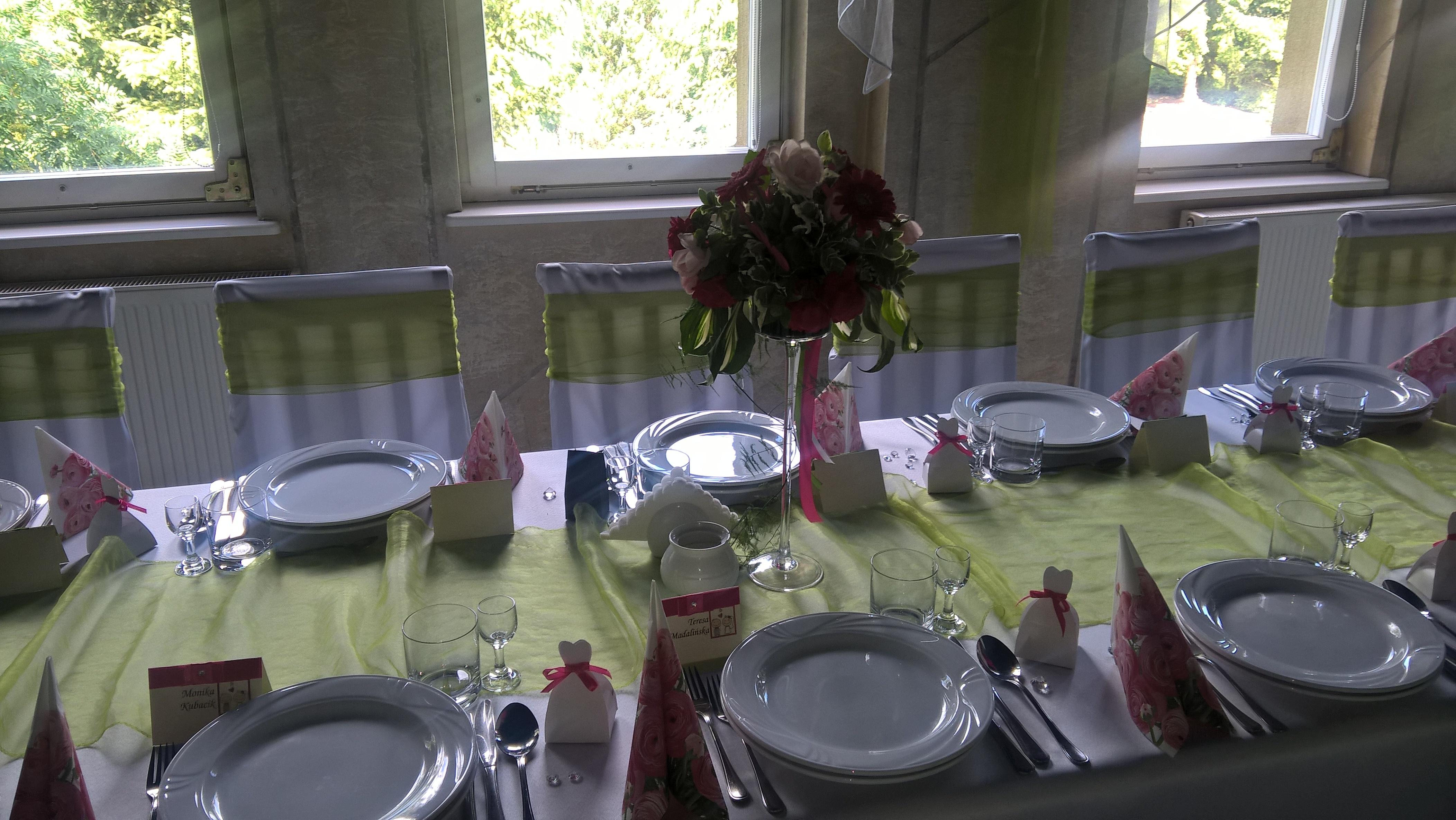 Byłam na sali, bo znajoma z FB bierze dziś ślub na naszej sali i miała byc dekoracja w fuksji, ale koleżanka zmieniła zdanie w ostatniej chwili, bo kwiaty miały inny odcień niż dekoracja na sali i zieleń jest. U mnie będzie najprawdopodobniej biel i gdzie nie gdzie granatowa wstążka nadająca tylko kolor, ale to już 3 opcja więc jeszcze pewnie mi się zmieni. Zdjęcia zrobiłam ja. ---------- Dopisano o 12:42 ---------- Poprzedni post napisano o 12:41 ---------- Cytat: