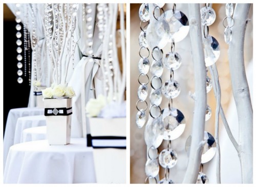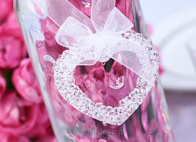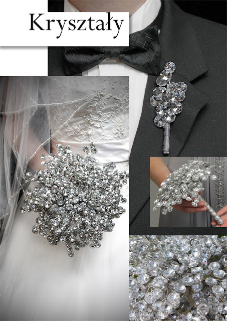 Oczywiście każdy element zdobiony może być bogato wysadzany kryształkami, ale może być i skromnie zdobiony. Wszystko pozostaje kwestią gustu i potrzeby Pary Młodej. Kryształki mogą być jednokolorowe np. białe, czy fioletowe, ale mogą również występować w wielobarwnej kolorystyce. Na koniec koniecznie trzeba dodać, iż kryształki nie muszą być prawdziwym kryształem, aby wyglądały elegancko i bogato, mogą być to w zastępstwie cyrkonie, lub inne dostosowane do portfela każdej Pary Młodej.