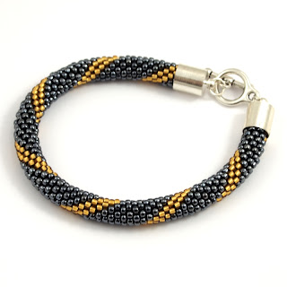 Może ja się po prostu na zbyt głęboką wodę rzuciłam - po zrobieniu jednej bransoletki z 6 koralików w rzędzie wzięłam się za taką na 10k/rz i to na dodatek z wzorem...