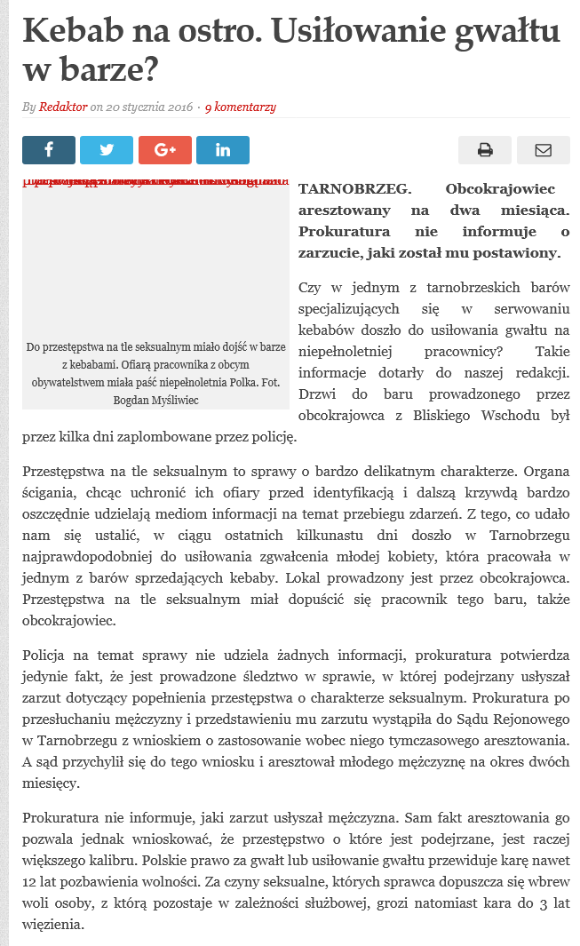 Z murów budowanych obecnie w EU, które wymieniłeś płotek PIS to wbijane kijki w ziemię, które wystarczy kopnąć i się to przewróci... Poza tym co ci z tego płotu? Lewak Kaczyński od 2016 roku masowo wydaje wizy już kilkudziesięciu tysiącom samotnym mężczyznom z krajów masowych zbiorowych gwałtów na dziewczynkach jak Pakistan, czy Indie. Przylatują samolotami, więc nawet solidny mur nic nie zatrzyma, bo pedofil Jarosław przyjmuje ich SAMOLOTAMI. Kolejny po Orzyszu i Lubartowie gwałt w punkcie z kebabem na polskiej dziewczynce, tym razem w Tarnobrzegu. Stajemy się drugą Anglią. Kaczyński już parę razy mówił, że "w Polsce będzie się żyło tak samo jak na Zachodzie, POD KAŻDYM WZGLĘDEM." Czyli będzie gigantyczny wzrost przestępczości wobec dziewczynek i kobiet, kradzieże, zamachy i morderstwa dokładnie jak to jest teraz na Zachodzie, który już jest trzecim światem. https://supernowosci24.pl/kebab-na-o...waltu-w-barze/ Kopia zdarzeń z artykułów z Anglii o punktach z kebabami już w Polsce. Bedzie ciekawie jak Donald Tusk opowie o Aferze Islamskiej Imigracji Kaczyńskiego, bo da się o tym powiedzieć w sposób inteligentny, tak by nie być oskarżonym o "rasizm" przez media. Zresztą nagle ci "legalnie" przyjęci przez rząd Kaczyńskiego arabowie, będą teraz uważani za tych, którzy przedarli się przez granicę i będą zgłaszani na policję. Co do muru w warunkach wojny hybrydowej z Białorusią, nie da się go uniknąć. To państwo jest państwem używającym terroru państwowego. Nawet bez problemu imigrantów, mur musiałby powstać, bo Łukaszenka planuje wspierać przemyt heroiny i kokainy na teren Polski. Edytowane przez bibi1234 Czas edycji: 2021-08-27 o 16:48 |